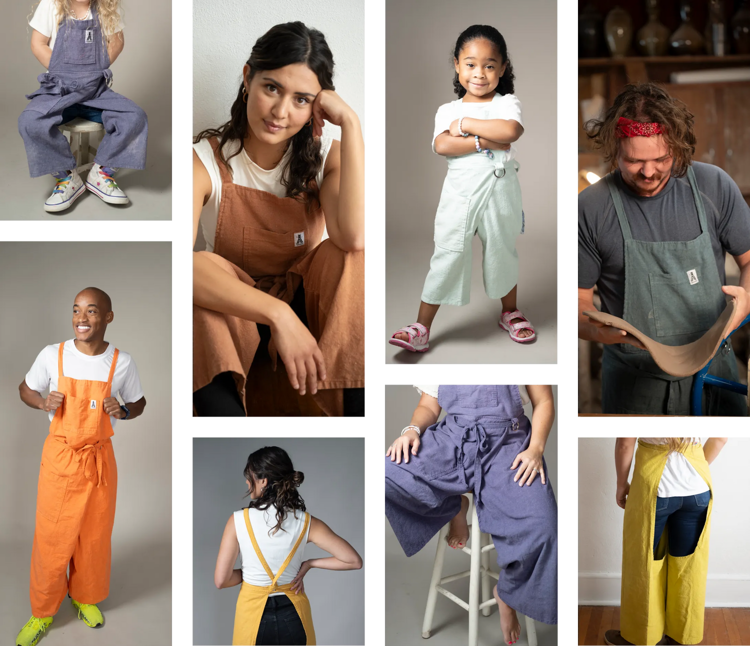 Purpose-built for potters and makers of all kinds. Study & soft cotton canvas, full wrap legs, ample pockets, reinforced seams, and more!