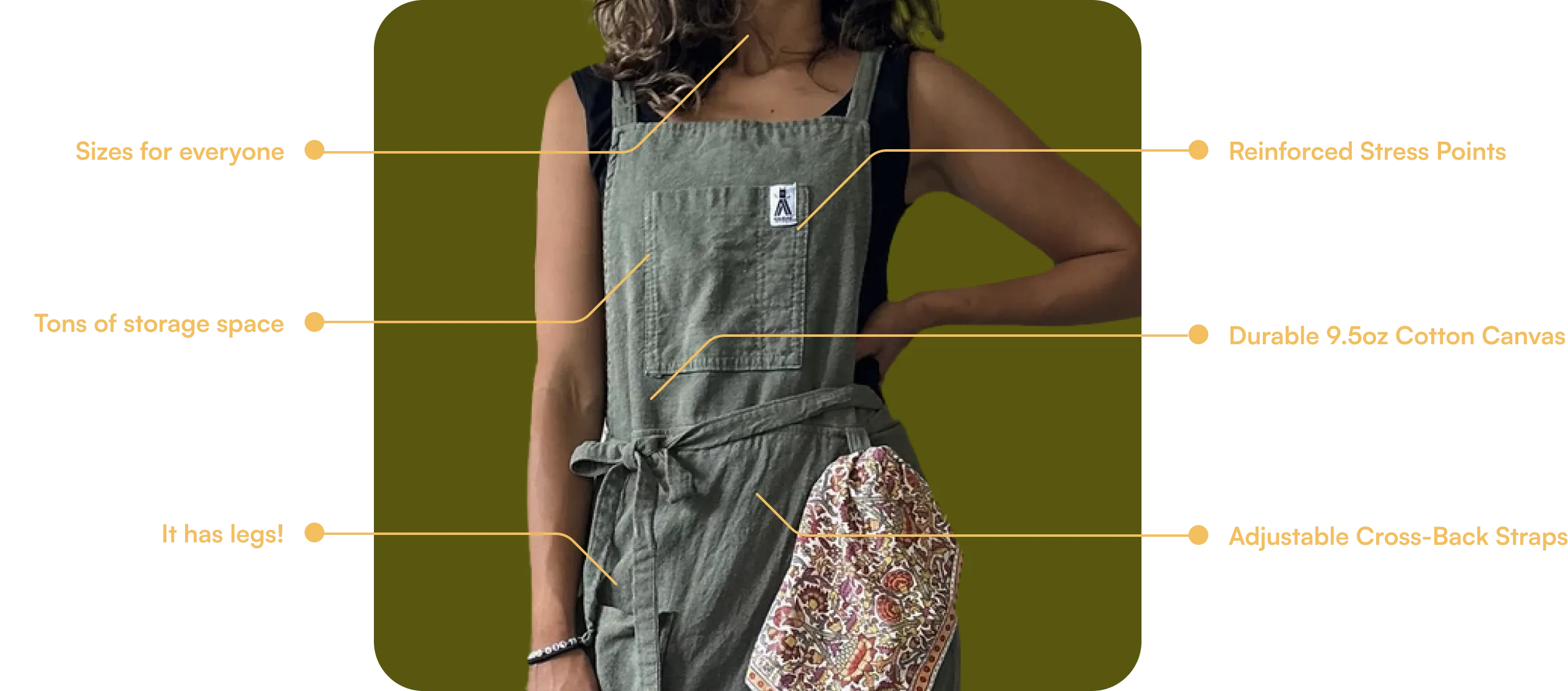 Taller than 5'9"? Petite and prefer a cropped look? Curvy in all the right places? Or looking for the perfect men's fit? Just leave a note with your order, and we'll tailor your apron to your specifications β at no extra charge!